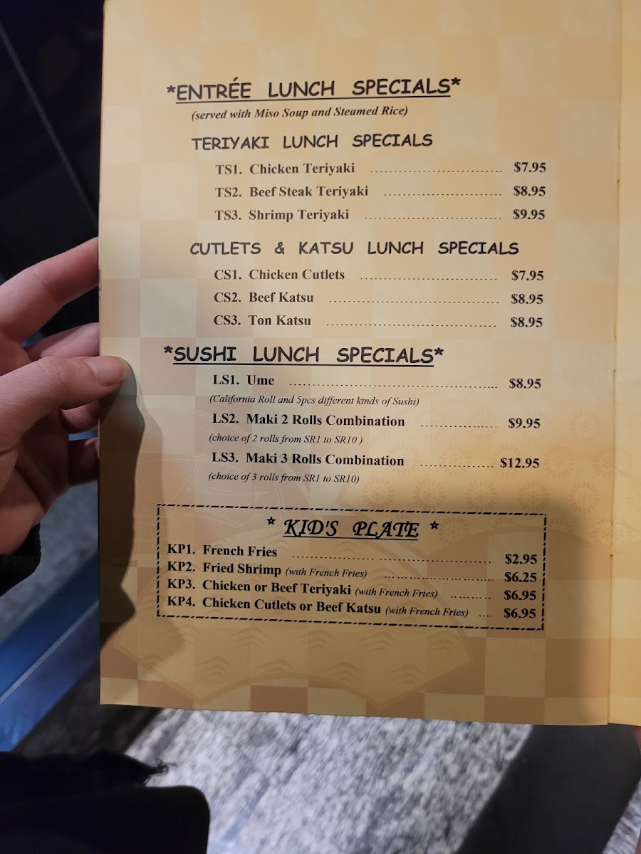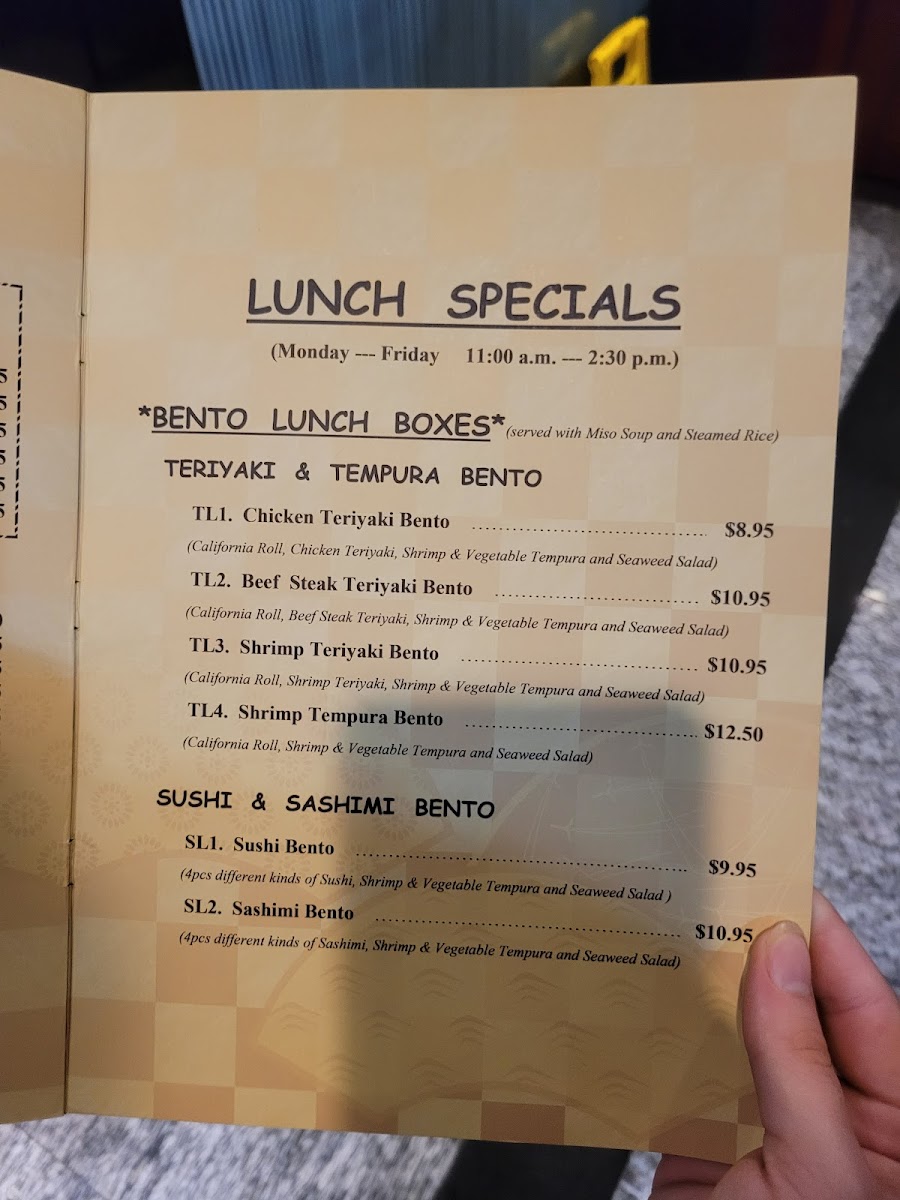 “ First our server was amazing i forgot your name but me and my wife had lunch and it was absolutley a great experience. We ordered our normal appetizers ikura and maguro sushi , some yellow tail and salmon. Shumai also. Food came out quick and portions was generous. For mains ordered triple sec and rainbow both was delicious fresh and had left overs All and all its a great place to eat we have been coming here for a bit ”